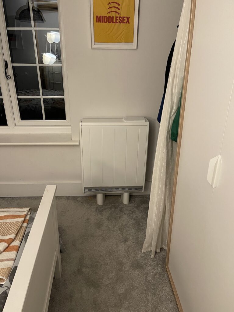 Larger space heaters didn’t make sense – so, cutting a very long story short I settled on High Heat Retention (HHR) Storage heaters. I found a company online who not only could supply and install the heaters within a week – they also didn’t take my pants down and ram spiky crap up my arse financially – plus the lads who fitted these throughout were just all kinds of class.