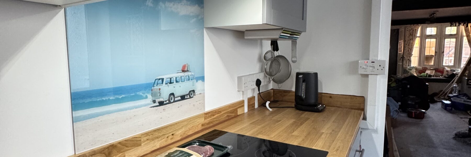 View from the entrance to the kitchen – you can see the Splash Back in place.